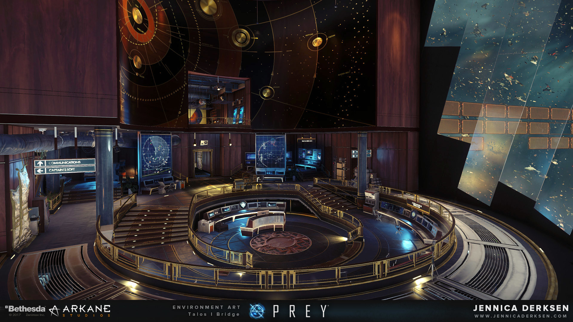 As an environment artist, I focused on polishing the Command Center area of the Talos I Bridge, integrating outsourced artwork and kitbashing the walls, floors, stairs and curved consoles from existing assets and materials. I also worked on the birthday surprise in the briefing room and some of the endgame content on the bridge. Phi Nguyen and Bryan Shannon were the primary environment artists who contributed to this level, John Fuhrer was the architect and Steve Powers was the designer.